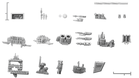 - Drop Pod S (lower bays), Drop Pod L (lower bays), Repair Bay (upside down) in Logistics Modules