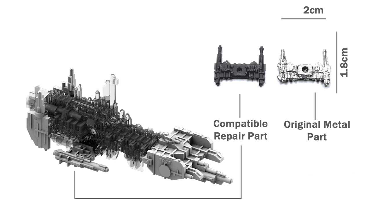 Warning: by adding this product to the cart and agreeing to the Terms & Conditions on checkout, you acknowledge the following: Compatible repair parts are sold for the exclusive use of repairing damaged GW ships, so as to restore its original appearance. These parts are manufactured in UV cured resin, as opposed to the white metal used in the originals. Battlefleet Galaxy has no affiliation with Games Workshop, and these parts should be considered non-OEM, or aftermarket parts for repair.